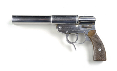 9-inch stainless steel barrels, the frame with push-forward underlever and side safety, impressed with the maker's trademark and dated 1939 and impressed Kriegsmarine mark, chequered walnut grips, German proof, barrel selector catch missing, mechanism defective