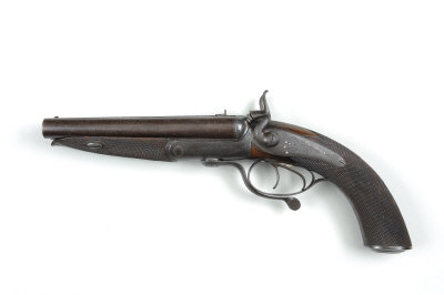 A .50 BOXER DOUBLE BARREL HAMMER HOWDAH PISTOL