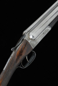 CHARLES LANCASTER A 12-BORE BOXLOCK EJECTOR ASSISTED-OPENING GUN, NO. 7392 28-inch damascus barrels with 2 1/2-inch chambers about true cylinder borings, the frame with scroll engraving, 15-inch stock repaired at the hand, 6lb. ??oz., nitro proof |