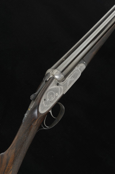 CLABOROUGH & JOHNSTONE A 16-BORE SIDELOCK EJECTOR GUN, NO. 18010 28-inch barrels with 2 1/2-inch chambers, about improved cylinder and 3/4 choke borings, mid extension, the frame, locks and top lever with bouquet and scroll engraving, 14 3/4-inch figured stock including 1 1/4-inch extension, 5lb. 11oz., nitro re-proof, in its leather case S2 |