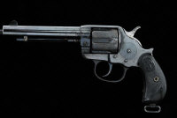 COLT A .45 1878 MODEL DOUBLE-ACTION FRONTIER REVOLVER, NO. 21288 5 1/2-inch barrel with Hartford address, the solid frame with loading gate and ejector rod and retaining much of its original bright blued finish, bird's beak grip with chequered composition grips, contemporary London black powder proof; together with a Smith & Wesson .32 revolver, no. 36283
