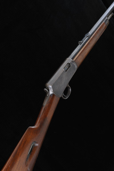WINCHESTER A .22 MODEL 1903 TAKE-DOWN SELF-LOADING RIFLE, NO. 52343 20-inch barrel with adjustable rear sight, the plain frame with take-down screw, 13 1/4-inch straight hand stock with tubular magazine and steel butt plate, 5lb. 8oz., nitro proof, in its fitted leather case |