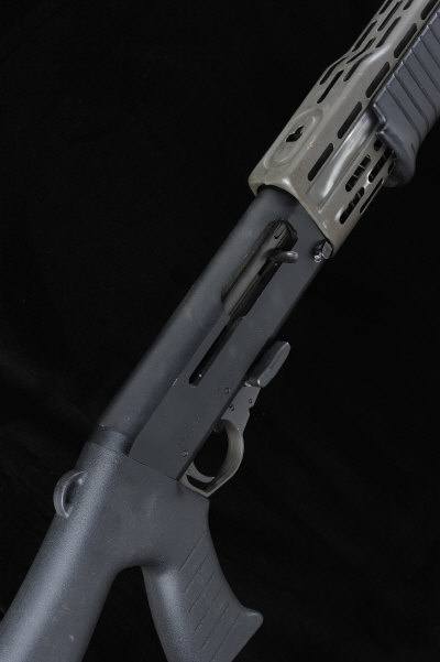 25-inch barrel with 2 3/4-inch chamber, about true cylinder boring, matt black receiver, unrestricted magazine capacity, plastic stock and fore-arm, 13 1/2-inch pull, 8lb. 11oz., Italian nitro proof