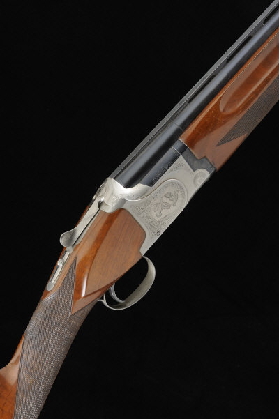 WINCHESTER A 12-BORE "SUPERGRADE" LIGHTWEIGHT SINGLE TRIGGER OVER AND UNDER GUN, NO. K471928E 28-inch monobloc barrels with 2 3/4-inch chambers, about 1/4 and 1/2 choke borings, machined ventilated rib, the frame and top lever with game scene and scroll decoration, 14 1/4-inch figured stock with maker's butt plate, 7lb. 1oz., nitro proof S2 |