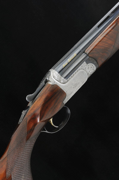 ARMI SALVINELLI A 12-BORE 'MONZA' SINGLE TRIGGER OVER AND UNDER EJECTOR GUN, NO. Y918 27 1/2-inch barrels with 3-inch chambers, proofed for steel, interchangeable Teague choke tubes, the frame and top lever with bold scroll engraving around scenes of game in landscapes, the trigger guard signed by the engraver, selective single trigger, 15-inch well figured stock including rubber recoil pad, 7lb. 6oz., Italian nitro proof for steel shot, in its maker's case with spare chokes, etc S2 |