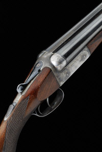 30-inch barrels with 2 3/4-inch chambers about 3/4 choke borings, file-cut rib with crossbolt extension, the frame with border and scroll engraving and retaining much original hardening colour, clipped fences, 14-inch figured stock with pistol grip and rubber recoil pad, 7lb. 7oz., nitro re-proof