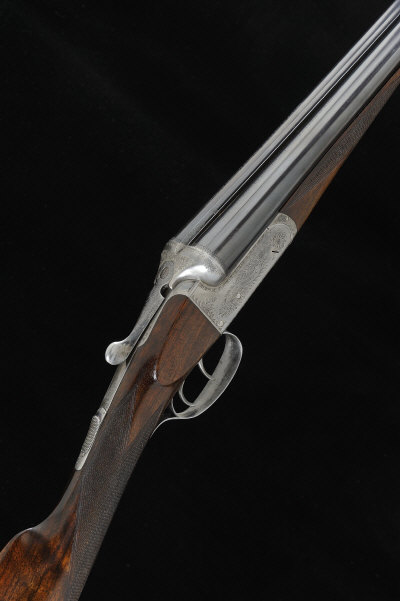 JOHN WILKES A 20-BORE BOXLOCK EJECTOR GUN, NO. 10257 26-inch replacement barrels by Churchill Gunmakers Ltd, with 2 1/2-inch chambers, about 1/2 choke borings, the frame and top lever with scroll engraving and retaining faint traces of hardening colour, the maker's name signed within a scrolling banner, 14-inch figured stock including 1 1/2-inch extension, 5lb. 8oz., nitro proof, leather case with Charles Hellis & Sons label S2 |