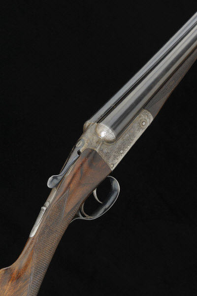 H. HODGSON A 20-BORE BOXLOCK NON-EJECTOR GUN, NO. 5519 28-inch barrels with 2 1/2-inch chambers, about true cylinder and 1/2 choke boring, the frame and top lever with scroll engraving and retaining some original hardening colour, 14 1/2-inch highly figured stock including 1 3/4-inch extension, 5lb. 10oz., nitro proof, bores lightly marked S2 |