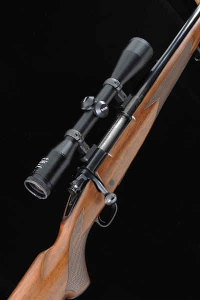 23 1/2-inch barrel, the receiver mounted with a Docter Optic 6x42 telescopic sight, bolt with side safety, magazine with hinged base plate, half length stock with pistol grip, cheekpiece and rubber recoil pad, 13 1/2-inch pull, 9lb. 1oz., nitro proof