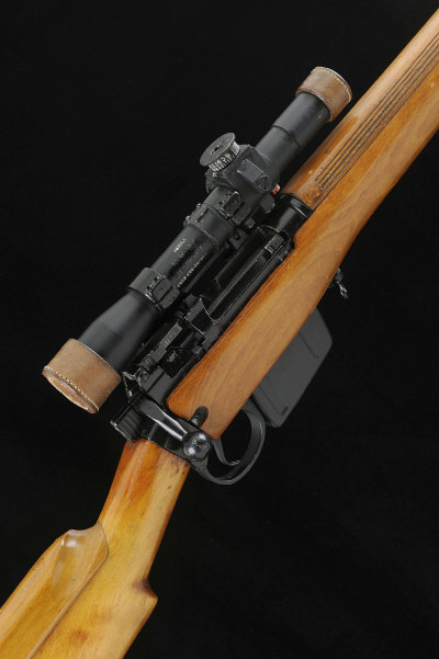 ENFIELD A SCARCE 7.62MM L42 A1 BOLT-ACTION SNIPER RIFLE, NO. AB8589 27 1/2-inch barrel with fore sight, the receiver with folding aperture rear sight and mounted with its converted no. 32 Mk3 telescopic sight, no. 21194 and further numbered 1240-99-963-2063, original markings struck out, in its quick detachable mount numbered to the rifle, the butt socket stamped "M47C, TR" and dated 1944, bolt with side safety, detachable box magazine, the beech fore-end with correctly marked hand guard, 13 1/2-inch stock with beech cheekpiece and alloy butt plate, sling swivels, 12lb. 2oz., nitro proof, in its green painted transit case containing its complete equipment schedule S1 |