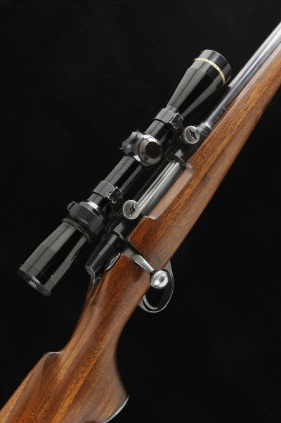 22-inch barrel with ramp fore sight, threaded for a sound moderator, the Sako action mounted with a Leupold Vari-X3 telescopic sight, bolt with side safety, magazine with hinged base plate, half length laminated stock with pistol grip and rubber recoil pad, 13 3/4-inch pull, 7lb, 12oz., nitro proof