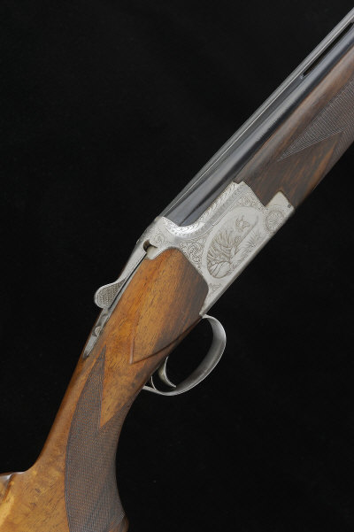BROWNING A 12-BORE B2G MODEL SINGLE TRIGGER OVER AND UNDER EJECTOR GUN, NO. 325PP01067 27 1/2-inch barrels with 2 3/4-inch chambers, about 1/4 and 3/4 choke borings, machined ventilated rib, the frame and top lever with game scene engraving and signed by the engraver "J. Lewamczvk", selective single trigger, non-automatic safety catch, 14 1/4-inch highly figured stock with pistol grip and maker's butt plate, 7lb. 4oz., Belgian nitro proof, in its maker's leather case with instruction booklet S2 |