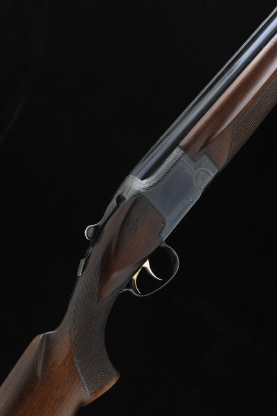 LAURONA A SPANISH 12-BORE OVER AND UNDER EJECTOR GUN, NO. 177752 28-inch barrels with 3-inch chambers, about 1/4 and 3/4 choke borings, machined ventilated rib, the plain black frame with border engraving, non-automatic safety catch, 14 1/4-inch stock with pistol grip and maker's butt plate, 7lb. 4oz., Spanish nitro proof, butt plate chipped S2 |
