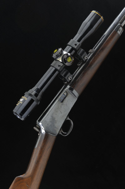 WINCHESTER A .22LR MODEL 1903 TAKE-DOWN SELF LOADING SPORTING RIFLE, NO. 10938 20-inch Parker rifled barrel threaded for a sound moderator and mounted with a Nikko Stirling telescopic sight, plain frame with crossbolt safety, 13 1/4-inch stock with crescent butt plate and magazine tube, 6lb. 4oz., nitro proof S1 |