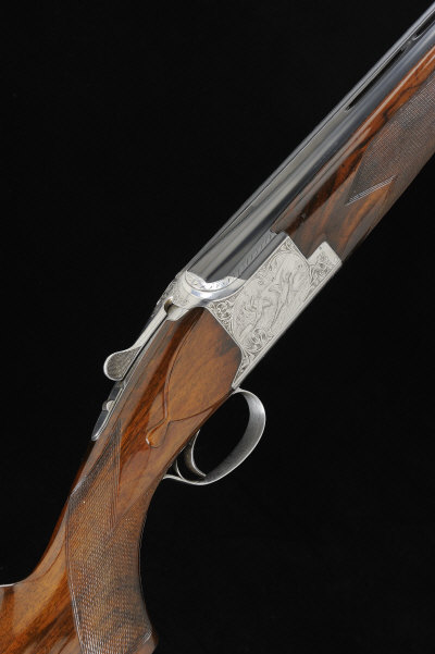 F. N. BROWNING A 12-BORE SINGLE TRIGGER OVER AND UNDER EJECTOR GUN, NO. 8H3RN02047 27 1/2-inch barrel with 2 3/4-inch chambers, about improved cylinder and 1/4 choke borings, machined ventilated rib, the frame and top lever with game scene engraving surrounded by bold scrollwork, selective single trigger, 14 1/2-inch figured stock with pistol grip including 1 1/2-inch extension, 7lb. 5oz., Belgian nitro proof S2 |