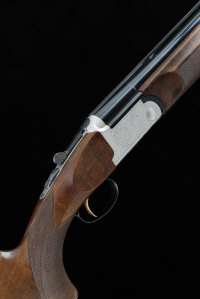 RIZZINI A 12-BORE SINGLE TRIGGER EJECTOR OVER AND UNDER TRAP GUN, NO. 3779 30-inch monobloc barrels with 2 3/4-inch chambers about 1/2 and full choke borings, machined ventiliated rib, the frame with bouquet and scroll decoration, 14 1/2-inch figured stock with pistol grip and recoil pad, 8lb. 3oz., Italian nitro proof |