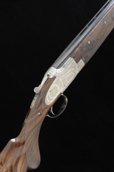 F. N. BROWNING A BELGIAN 20-BORE CUSTOM SIDE PLATE SINGLE TRIGGER OVER AND UNDER EJECTOR GUN, NO. 13191 26 1/2-inch barrels with 3-inch chambers, about 1/2 and full choke borings, matted ventilated rib, three-piece fore-end, the frame, top lever and side plates with scroll engraving, selective single trigger, 15-inch highly figured stock with semi pistol grip, 6lb. 10oz., Belgian nitro proof, lightweight leather motor case S2 |