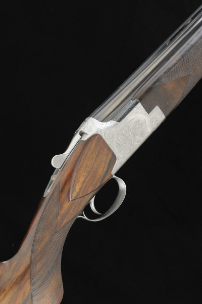 BROWNING A FINE 12-BORE BELGIAN B2G MODEL SINGLE TRIGGER OVER AND UNDER EJECTOR GUN, NO. 325MZ03540 30-inch barrels with 3-inch chambers, about improved cylinder and 1/2 choke borings, machined ventilated rib, the frame and top lever with scroll engraving surrounding scenes of duck and pheasant in flight, signed by the engraver "F. Krill", selective single trigger, 14 3/4-inch figured stock with semi pistol grip and maker's butt plate, 7lb. 7oz., Belgian nitro proof, in its maker's custom shop leather case S2 The gun appears little used. |