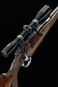 J. ROBERTS & SON A .300 H&H MAGNUM BOLT-ACTION SPORTING RIFLE, NO. 3086 25-inch barrel, the DWM marked receiver with fine scroll engraving and mounted with a Schmidt & Bender 6x42 telescopic sight, tang safety, hinged magazine base plate with fine scroll engraving, recoil stud, the half length well figured stock with pistol grip, cheekpiece and recoil pad, 14-inch pull, sling swivels, 8lb. 4oz. |