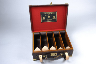 JAMES PURDEY & SONS A BRASSBOUND OAK AND LEATHER CARTRIDGE MAGAZINE for about 250 cases, with leather straps and oak dividers, remaining in a virtually unused condition |