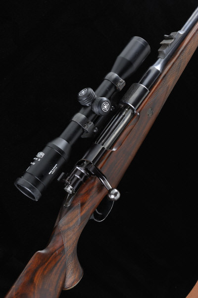 HOLLAND & HOLLAND A FINE 7MM REMINGTON MAGNUM BOLT-ACTION SPORTING RIFLE, NO. 3779 25-inch barrel with ramp fore sight with folding cover, rear sight with unfinished folding leaf, the FN action with stippled top surface and side mount mounted with a Kahles Helia S 4x32 telescopic sight, recoil stud, the magazine with hinged base plate, the half length highly figured stock with pistol grip, cheekpiece and recoil pad, 15 1/2-inch pull, sling eyes, 9lb. 8oz., nitro proof