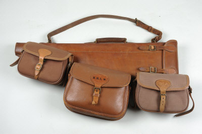 comprising: a leather leg-of-mutton gun case, a leather Paine Galway cartridge bag for 100 cartridges and two Brady canvas cartridge bags (4)