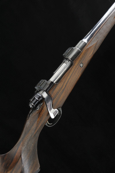 THOMPSON & CAMPBELL LTD A 7MM REM MAG BOLT-ACTION SPORTING RIFLE, NO. 26258 26-inch barrel engraved "Specially Built for M. Allen", the Mauser 98 receiver fitted with dove-tail blocks, bolt with side safety, magazine with hinged base plate, recoil stud, the half length well figured stock with pistol grip, cheekpiece and rubber recoil pad, 14 3/4-inch pull, 8lb. 4oz., nitro proof S1 |