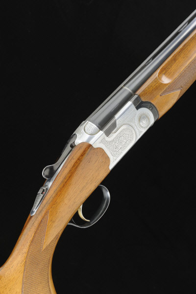 P. BERETTA A 12-BORE 686 SPECIAL MODEL SINGLE TRIGGER OVER AND UNDER EJECTOR GUN, NO. D89397B 28-inch monobloc barrels with 2 3/4-inch chambers, about 1/4 and 1/2 choke borings, machined ventilated rib, the frame and top lever with bouquet and scroll decoration, selective single trigger, 14-inch figured stock with pistol grip and ribbed butt plate, 6lb. 12oz., Italian nitro proof S2 |