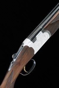 P. BERETTA A 20-BORE MODEL 687 SILVER PIGEON SINGLE TRIGGER OVER AND UNDER EJECTOR GUN, NO. M15553B 28-inch barrels with 3-inch chambers about 1/4 and 1/2 choke borings, machined ventilated rib, the frame with scroll and game scene decoration, 14 1/2-inch well figured stock with pistol grip, 5lb. 15oz., Italian nitro proof