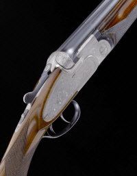 BERETTA A 12-BORE MODEL S2 SIDELOCK EJECTOR OVER AND UNDER GUN, NO. 6512 28-inch monobloc barrels with 2 3/4-inch chambers about 1/2 and full choke borings, solid machined rib, crossbolt extension, the frame and locks with bouquet and scroll engraving, 15 1/4-inch figured stock with semi pistol grip and rubber recoil pad, sling swivels, 7lb, nitro proof, top barrel wall thickness marginal |