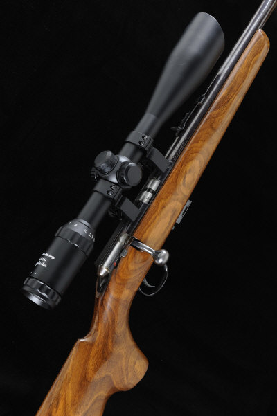 BSA A .22 "SUPERSPORT FIVE" BOLT-ACTION SPORTING RIFLE, NO. 1760 22 1/2-inch barrel with ramp fore sight, the receiver mounted with a Nikko Stirling "Nighteater" telescopic sight, detachable box magazine, bolt with side safety, the well figured half length stock with pistol grip and cheekpiece, 13 1/2-inch pull, 7lb. 5oz., nitro proof S1 |
