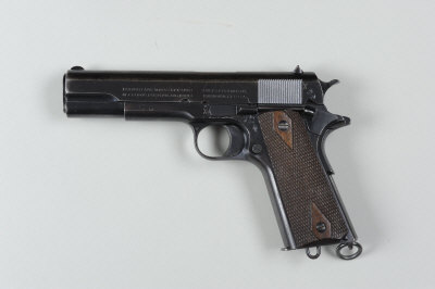 COLT A SCARCE .455 MODEL 1911 SELF-LOADING SERVICE PISTOL, NO. W100577 5-inch barrel, the slide with patent dates to 1913 and rampant colt trademark, the frame with G2A inspector's mark, magazine with lanyard loop, grip safety, chequered walnut grips, retaining much original finish overall, nitro proof, the grip strap and frame side crudely stamped with the letters 'CC' S5 |