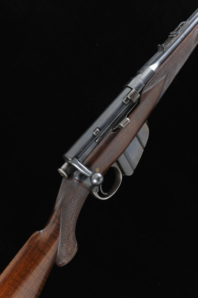 BSA A .303 LEE SPEED PATENT BOLT-ACTION SPORTING RIFLE, NO. A629, RETAILED BY J. GRAHAM, INVERNESS 24 1/2-inch barrel with full length rib and folding ladder sight, the receiver with border engraving and magazine cut-off, detachable box magazine, 14-inch well figured stock with pistol grip and steel butt plate, sling eyes, 7lb. 4oz., nitro proof S1 |