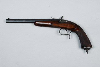 A CONTINENTAL 6MM SALOON PISTOL, NO. 89 9 3/4-inch octagonal barrel with fixed sights, the breech signed Regle, trigger guard with spur, chequered walnut grip, Belgian proof