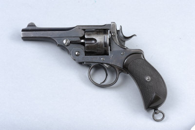 WEBLEY A .455 MARK I SERVICE REVOLVER, NO. 804 4-inch barrel, the frame with winged bullet trademark and stirrup catch and retaining some original finish, chequered composition bird's head grip with lanyard ring, nitro proof