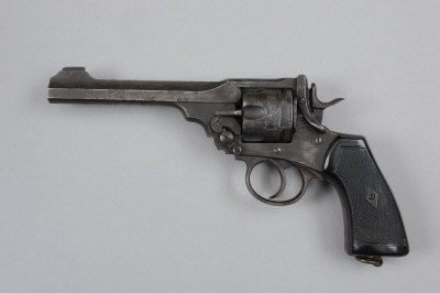 WEBLEY & SCOTT A .455 MARK VI SERVICE REVOLVER, NO. 335787 6-inch barrel, the frame with inspector's mark and dated 1918, chequered composition grip, chipped, lanyard ring, nitro proof S5 |