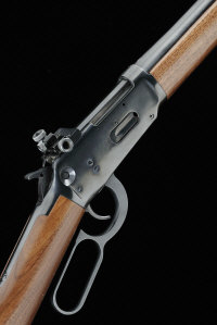 16-inch barrel with full-length magazine tube, the receiver fitted with a William aperture sight, 13 3/4-inch figured stock, 6lb. 5oz., nitro proof