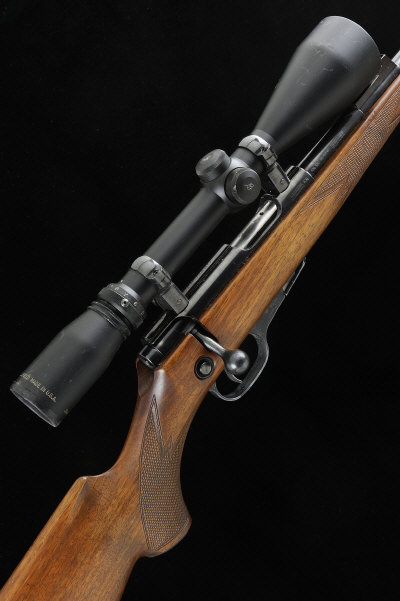 WALTHER A .22 KKJ MODEL BOLT-ACTION SPORTING RIFLE, NO. 007222 20-inch barrel fitted with a sound moderator, rear sight removed, receiver mounted with a Burris telescopic sight, crossbolt safety, detachable box magazine, the half length stock with pistol grip, cheekpiece and ribbed butt plate, 14-inch pull, sling swivels, 7lb. 9oz., nitro proof, together with four spare magazines S1 |