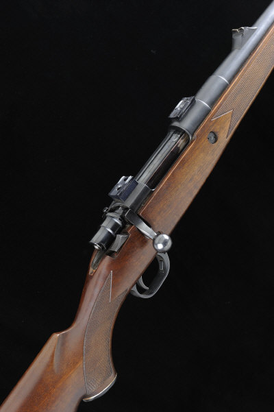 PARKER HALE A .375 MAGNUM BOLT-ACTION SPORTING RIFLE, NO. MAG-54688 24-inch barrel with ramp fore sight and raised rear sight, the receiver mounted with scope blocks, bolt with side safety, magazine with hinged base plate, recoil studs, the half length stock with pistol grip, cheekpiece and maker's butt plate, 13 1/2-inch pull, 9lb., nitro proof S1 |