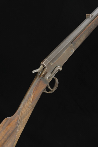 W. J. JEFFERY & CO. A .297/.250 HAMMER ROOK RIFLE, NO. 2224 26-inch octagonal barrel with folding leaf sight, the plain frame with central hammer and side lever, 14 1/2-inch figured stock, 4lb. 12oz., black powder proof S58 |