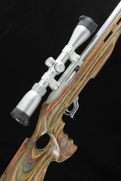 20-inch hammer forged stainless steel barrel fitted with a muzzle break, the receiver mounted with a Hawke telescopic sight, detachable rotary magazine, half length laminated stock with pistol grip, cheekpiece and rubber recoil pad, 13 3/4-inch pull, 8lb. 14oz., nitro proof