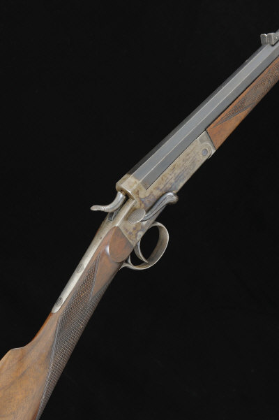ARMY & NAVY A .300 HAMMER ROOK RIFLE, NO. 22526 26-inch octagonal barrel with folding leaf sights, the plain frame with central hammer and side lever, retaining much original hardening colour, 14 1/4-inch figured stock, 4lb. 11oz., black powder proof S58 |