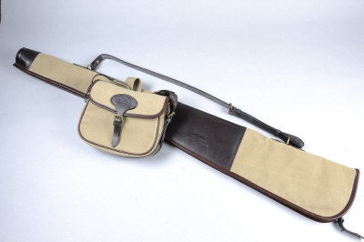 WESTLEY RICHARDS A CANVAS AND LEATHER FULL LENGTH GUN SLIP with sheepskin lining and leather trim; together with its matching cartridge bag (2) |