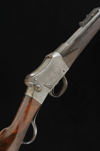 I. HOLLIS & SONS A .450/.577 MARTINI ACTION SPORTING RIFLE, NO. 5324 26-inch barrel with raised fore sight and folding leaf and ladder rear sights, the frame with loading lever and side safety, 14-inch figured stock with steel butt plate with trap, sling eyes, 7lb. 9oz., black powder proof S58 |