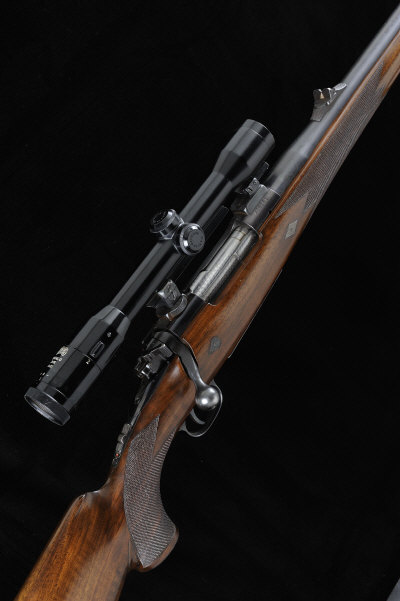 WINCHESTER A .458 WIN MAG MODEL 70 SUPER GRADE BOLT-ACTION SPORTING RIFLE, NO. 408361 25-inch barrel with ramp fore sight and fixed rear sight, the receiver mounted with a Hensoldt Diatal-D 2x16 telescopic sight in quick detachable claw mounts, bolt with side safety and additional tang safety, magazine with hinged base plate, recoil studs, the half length well figured stock with pistol grip, cheekpiece and recoil pad, 14 1/2-inch pull, 10lb. 6oz., nitro proof S1 |