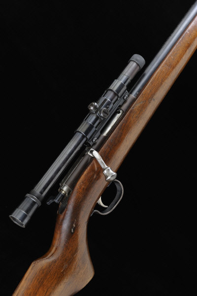 24-inch barrel, the receiver mounted with a Weaver telescopic sight, tubular magazine, the half length stock with pistol grip and maker's butt plate, 6lb. 8oz., nitro proof; together with a Winchester .22 model 77 self-loading rifle, no. 129023, of standard specification, nitro proof (2)