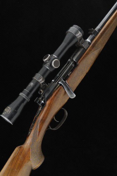 MANNLICHER A .270 MODEL GK BOLT-ACTION SPORTING RIFLE, NO. 58740 23 1/2-inch barrel with ramp fore sight, rear sight with folding leaf, the receiver mounted with a Pecar 4x81 telescopic sight, in swing-off mounts, bolt with flag and tang safety, rotary magazine, the half length stock with pistol grip, cheekpiece and rubber recoil pad, sling swivels, 14 1/4-inch pull, 8lb. 10oz., Austrian nitro proof S1 |