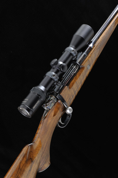 W. J. JEFFERY A .30-06 BOLT-ACTION SPORTING RIFLE, NO. 41306 24 1/2-inch barrel, the Mauser action mounted with a Swarovski 1.5-6x42 Habicht telescopic sight, bolt with side safety, the trigger guard and hinged base plate inlaid in gold with calibre and serial number details and with border engraving, recoil stud, the half length stock with pistol grip, cheekpiece and recoil pad, 14-inch pull, 8lb. 12oz., nitro proof