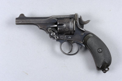 P. WEBLEY & SON A .455 MARK III SERVICE REVOLVER, NO. 5035 4-inch barrel impressed with London and Birmingham address, the frame with winged bullet trademark, stirrup catch and lanyard ring, bird's head butt with chequered composition grip, black powder proof, right grip chipped