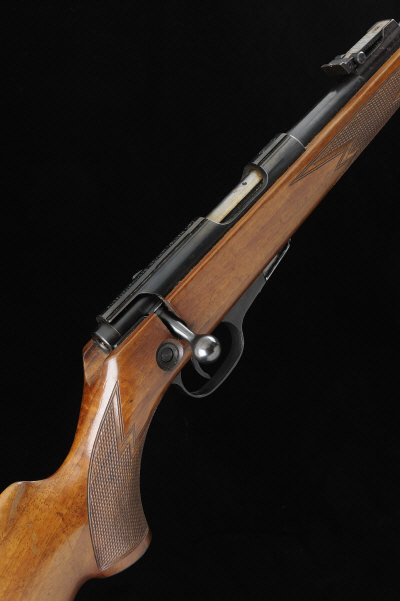 WALTHER A .22 MODEL KKJ BOLT-ACTION SPORTING RIFLE, NO. 40481 23 1/2-inch barrel with ramp fore sight and adjustable tangent rear sight, the receiver with dove tail groove, bolt with crossbolt safety, detachable box magazine, half length stock with pistol grip, cheekpiece and ribbed butt plate, sling swivels, 14-inch pull, 6lb. 2oz., German nitro proof S1 |